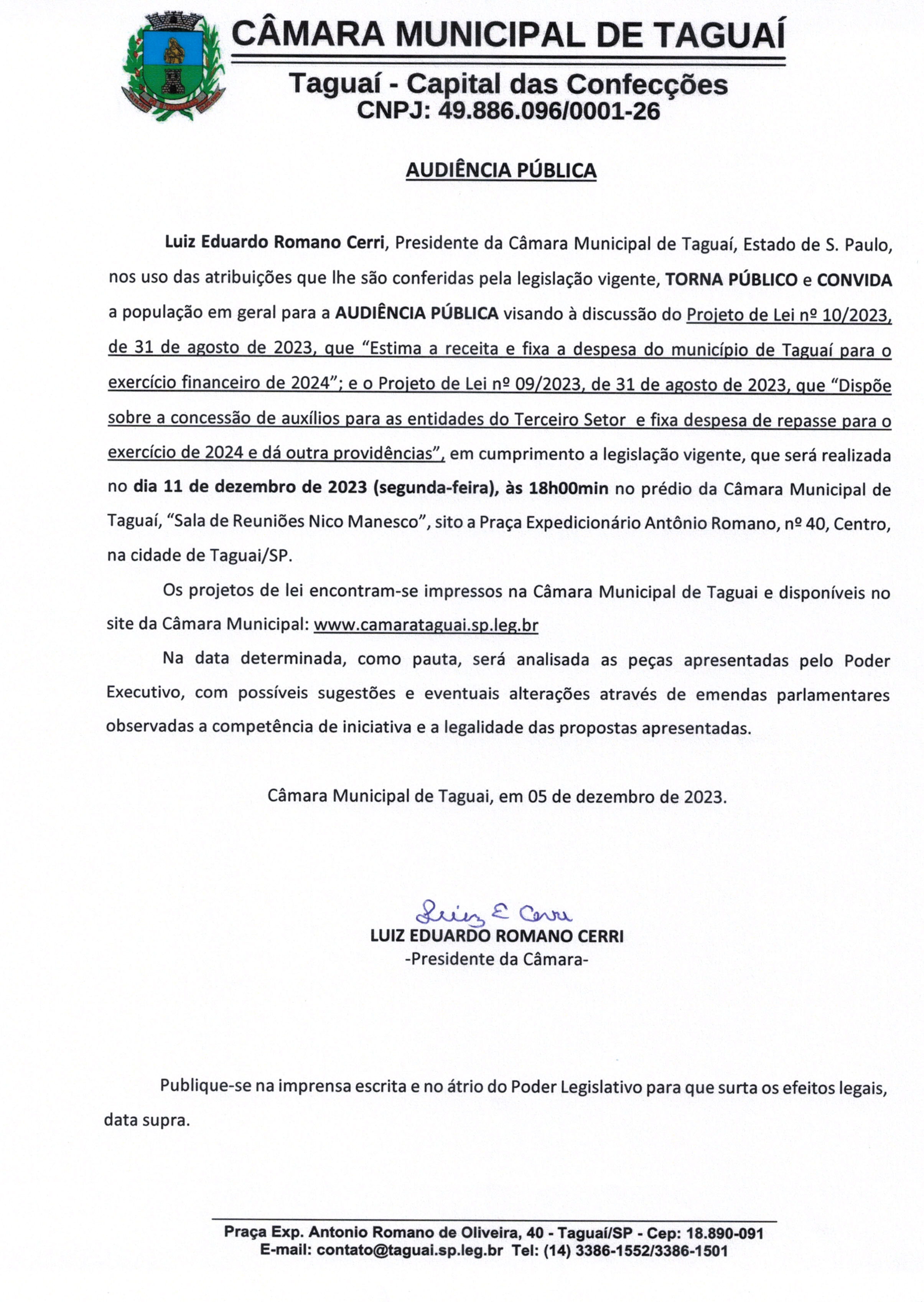 - 5ª Sessão Ordinária da Câmara Municipal de Taguaí 07/04/2026 20h00 (Brazil/East) — Câmara Municipal de Taguaí