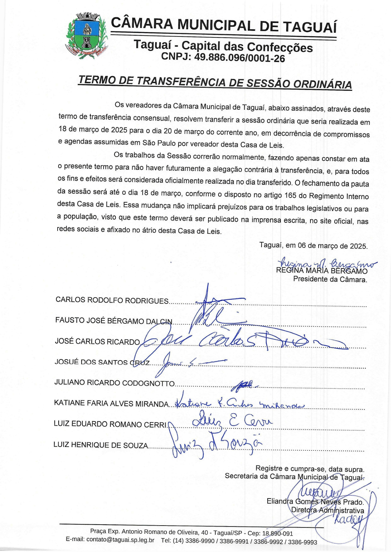 - 5ª Sessão Ordinária da Câmara Municipal de Taguaí 07/04/2026 20h00 (Brazil/East) — Câmara Municipal de Taguaí