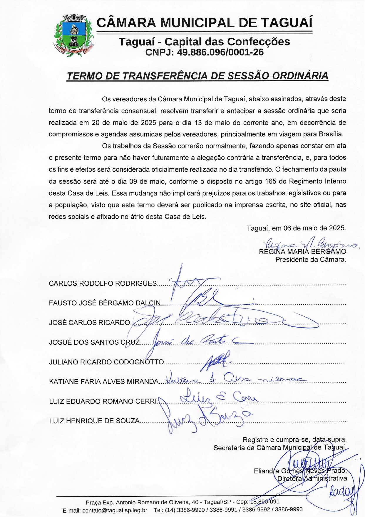 - 5ª Sessão Ordinária da Câmara Municipal de Taguaí 07/04/2026 20h00 (Brazil/East) — Câmara Municipal de Taguaí